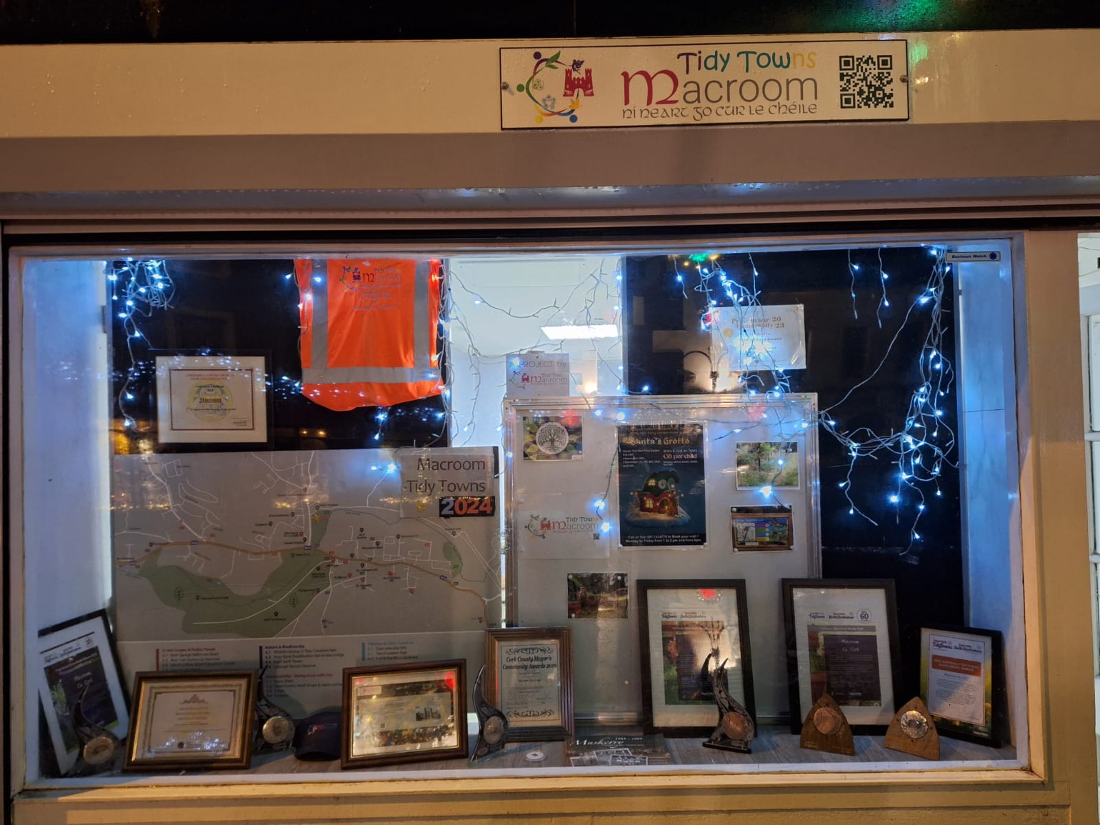 Completed 2024 ongoing . Thanks to Matt Murphy's pharmacy for use of shopfront display. Window display/layout/construction: Lisa Manning and Joseph Cronin with Tidy Towns officer committee input. Shopfront display is updated on a regular basis .
