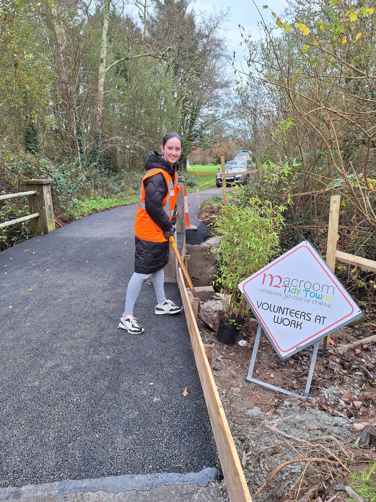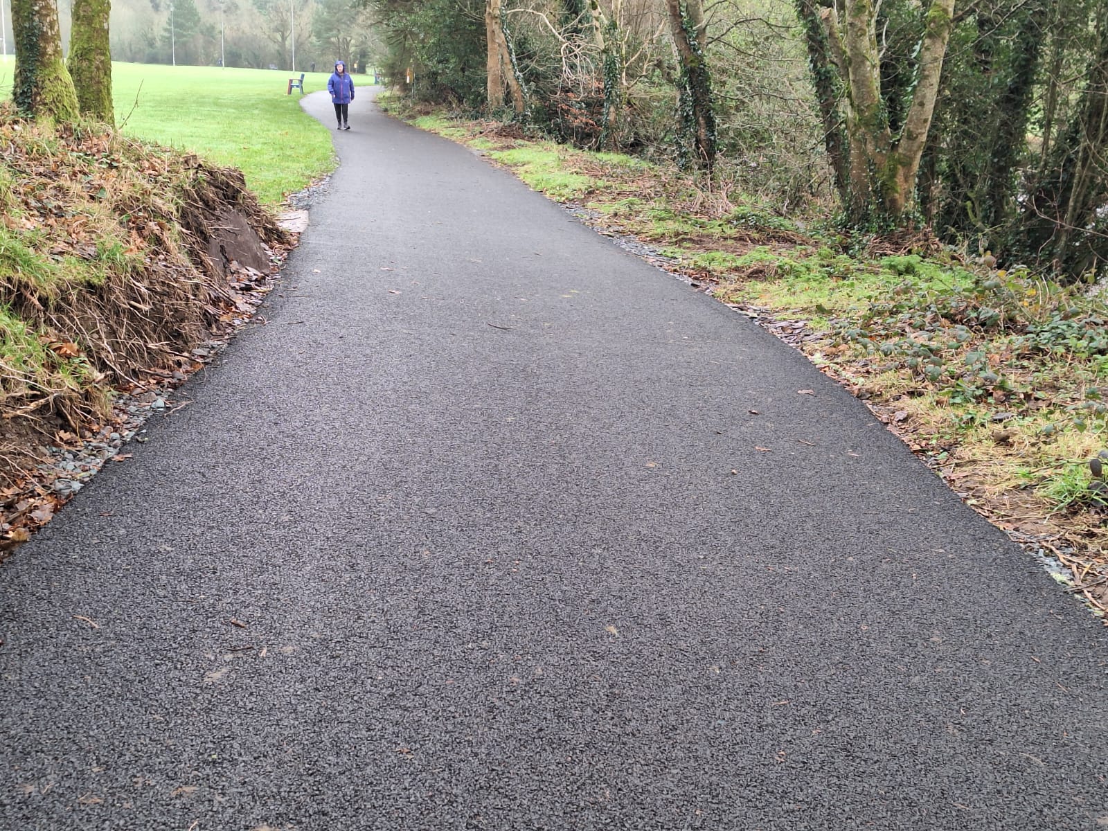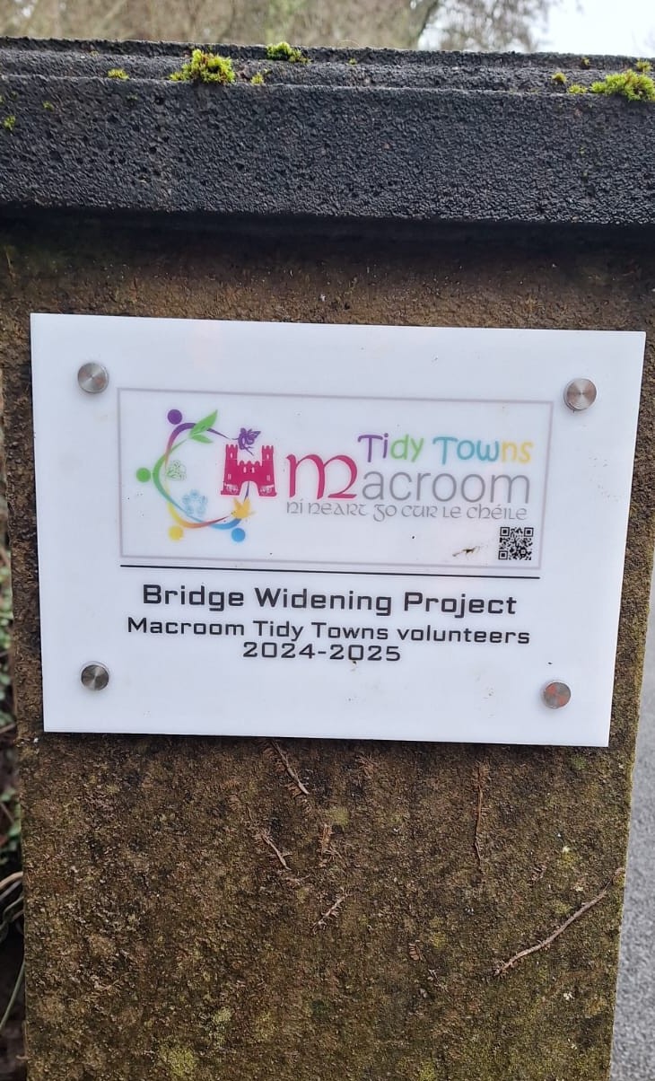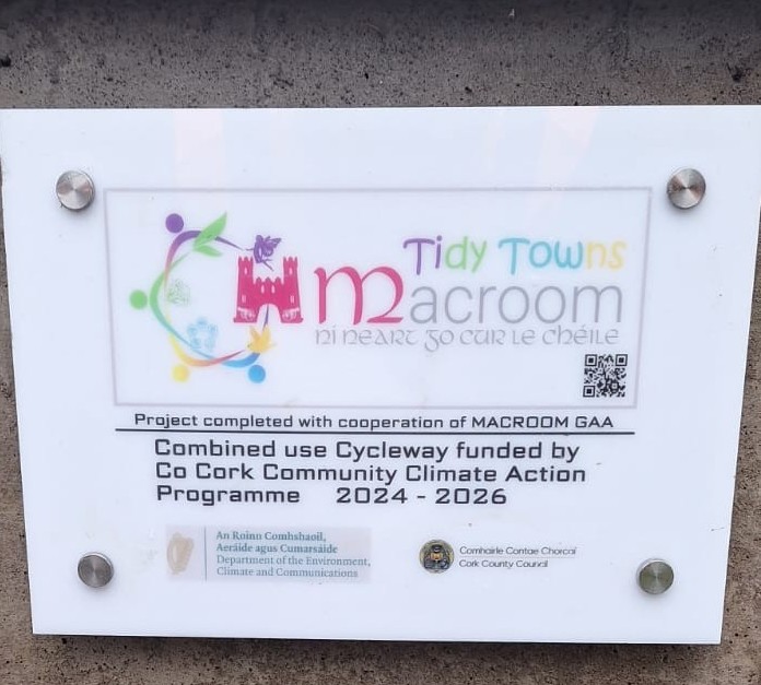 Completed end 2025 Excess €100 k. Majority of funding through CCAP, DECC and Cork Co.Council. Main tarmacadam work by contractor Niall Murphy. Project initiation,planning,coordination : Joseph Cronin,Martin Coughlan,John Lyons,Brian O'Sullivan and MTT officer Committee with assistance from Macroom GAA. Bridge alteration: additional budget, work and materials through Tidy Towns Committee and volunteers.
