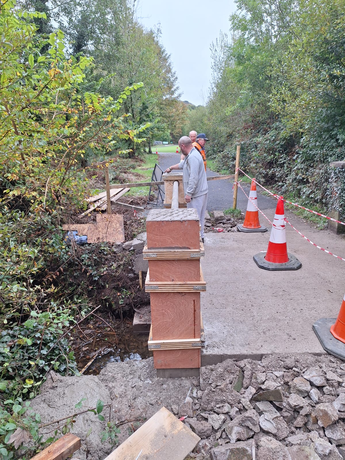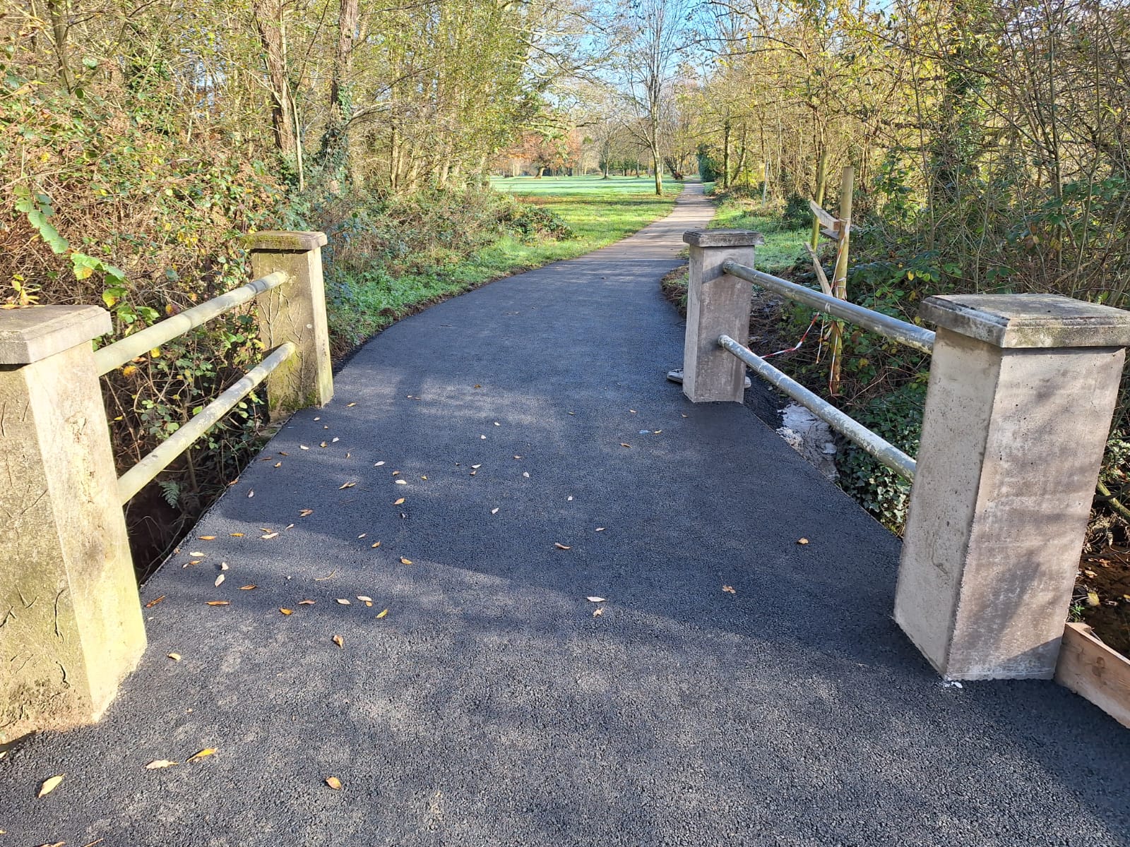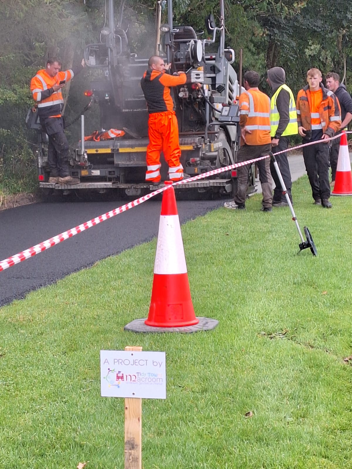 Completed end 2025 Excess €100 k. Majority of funding through CCAP, DECC and Cork Co.Council. Main tarmacadam work by contractor Niall Murphy. Project initiation,planning,coordination : Joseph Cronin,Martin Coughlan,John Lyons,Brian O'Sullivan and MTT officer Committee with assistance from Macroom GAA. Bridge alteration: additional budget, work and materials through Tidy Towns Committee and volunteers.