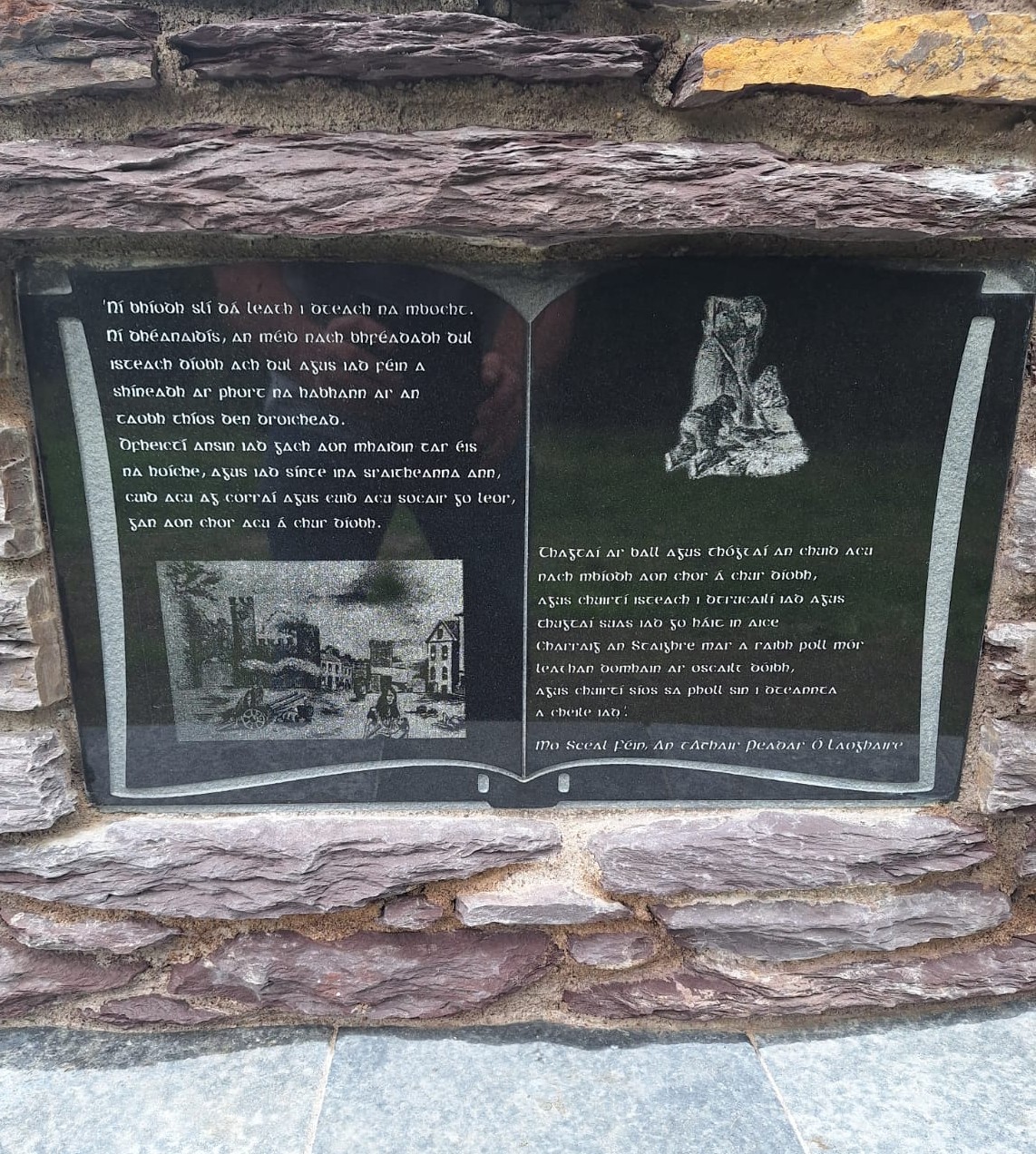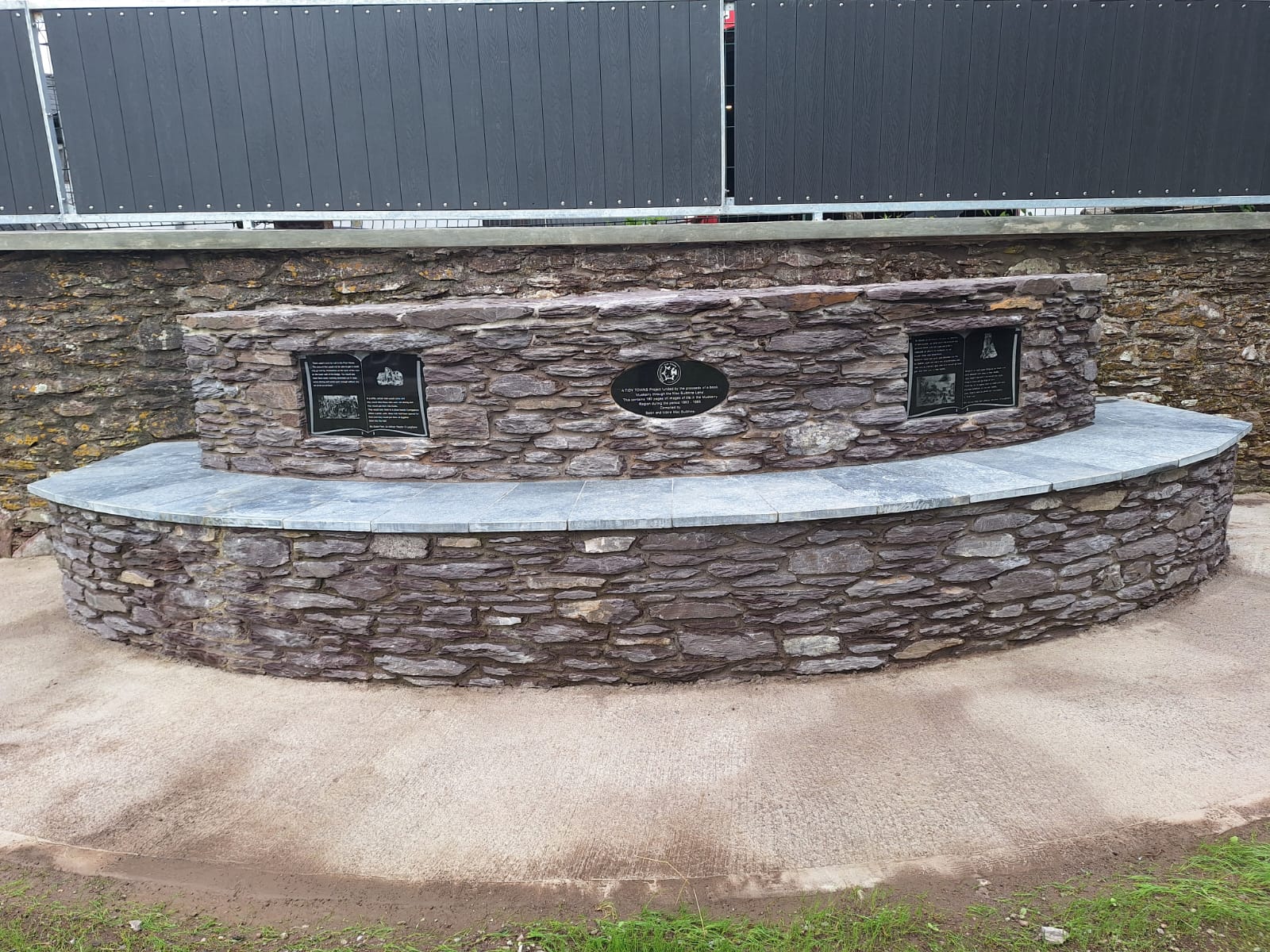 Completed end 2024 Excess €15k. Project initiation, planning,coordination: Martin Coughlan,John Lyons,Judy O'Sullivan.Additional work and materials by Tidy Towns committee and volunteers. Majority of funding through book proceeds.Funding from IRD Duhallow in relation to publication. Stonework, plaques and framework by local contractors.